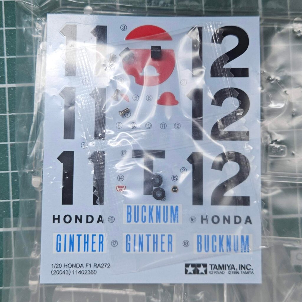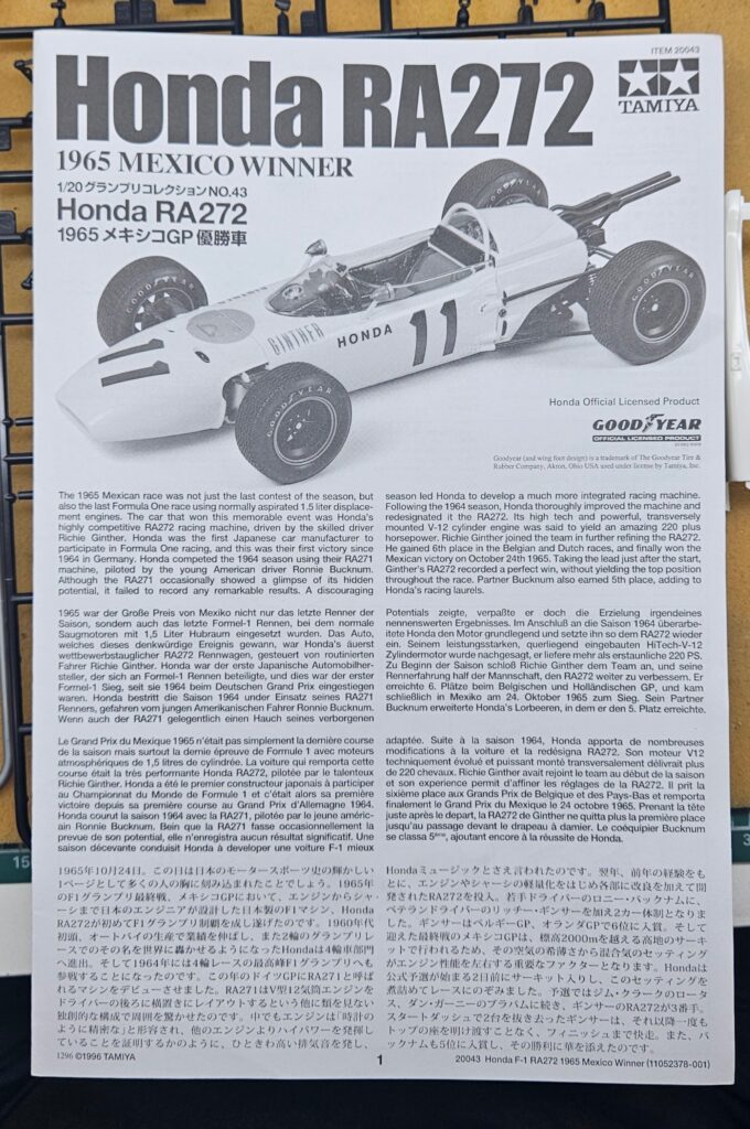 Honda RA272 1965 Mexico WinnerBrand: TamiyaScale: 1:20Released: 1996 New tool
